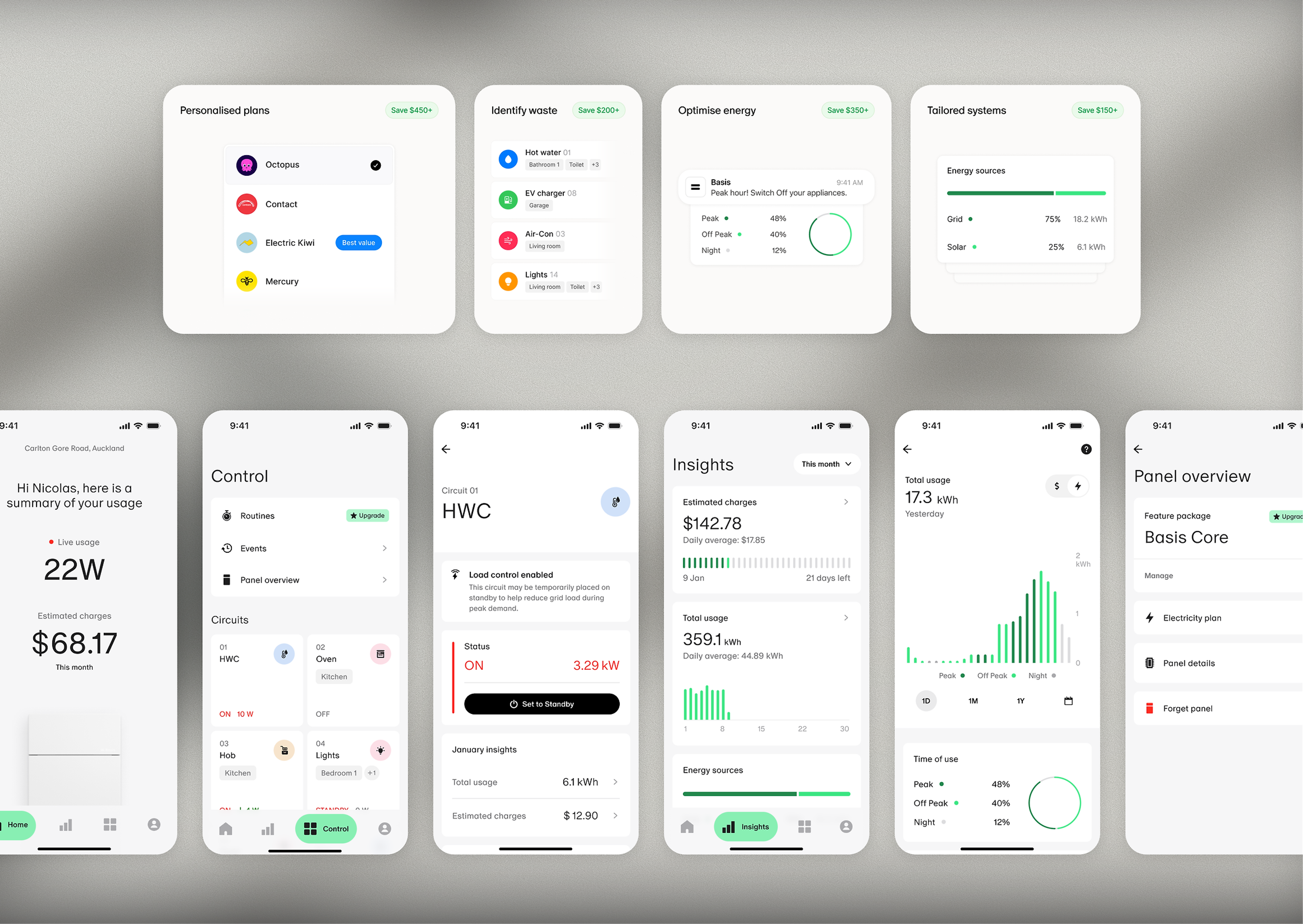 - Real-time energy usage so you know what’s pulling power, and where
