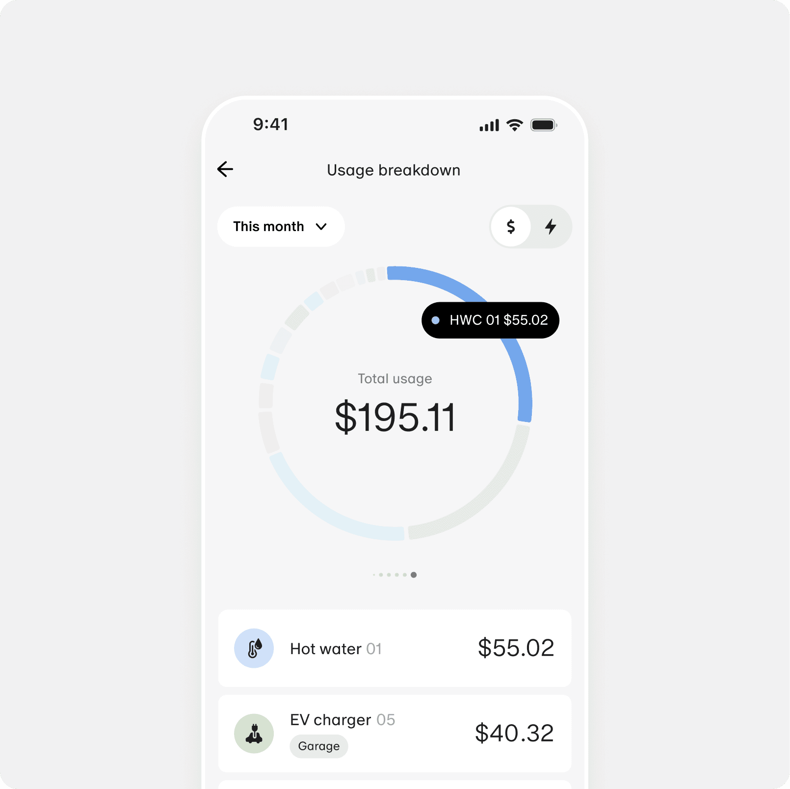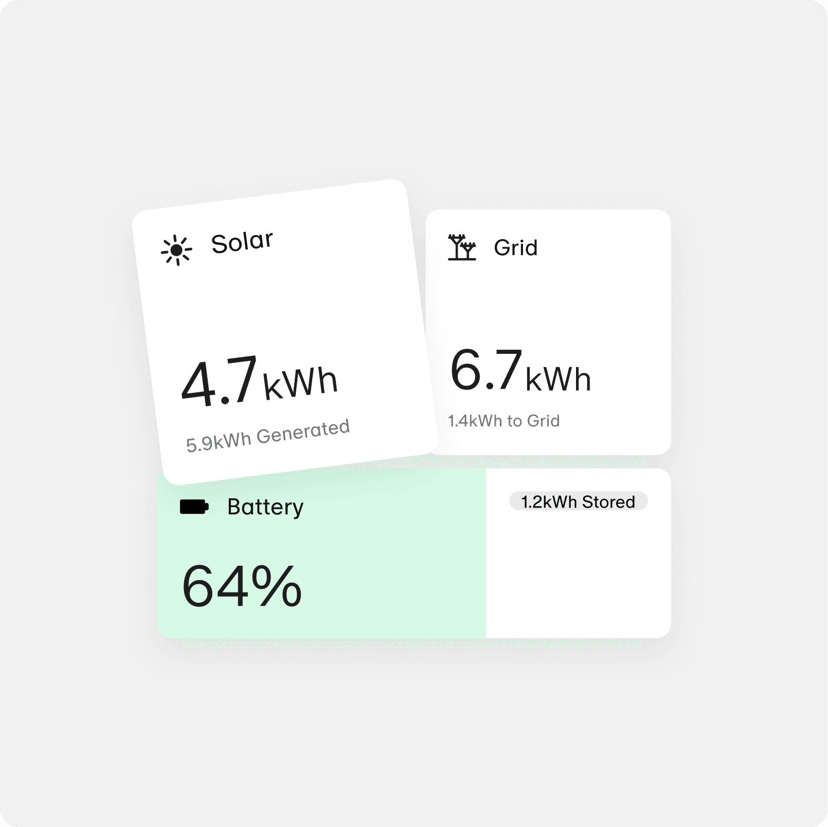 Get a comprehensive view of your energy consumption across any different sources you may have connected — solar, battery and the grid.
